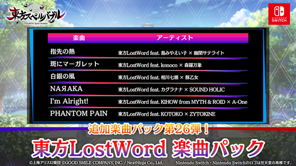 Nintendo Switch™ダウンロード専用ソフト「東方スペルバブル」の追加ダウンロードコンテンツ「東方LostWord 楽曲パック」を1月12日(木)より配信開始いたしました!