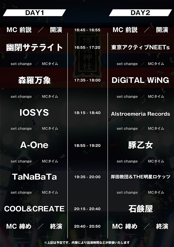 ※タイムスケジュールは現在の予定です。内容により出演時間などが前後いたします。