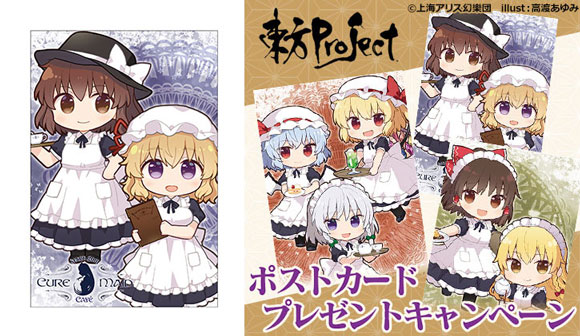 5月は様々な会場で『東方Project』のイベントが開催されることを記念して、タブリエ・マーケティングが展開する連動企画『5月はGO!東方Project!ポストカードプレゼントキャンペーン』はCURE MAID CAFÉのコラボカフェも対象。