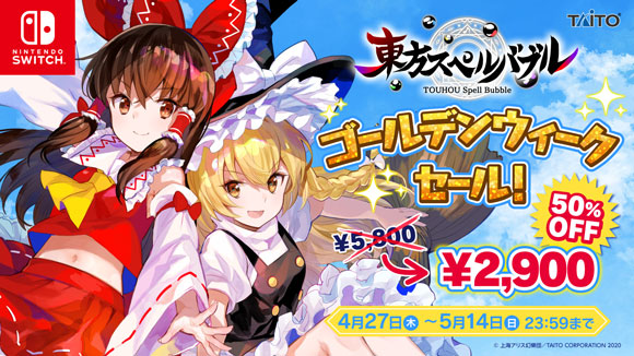 『東方スペルバブル』の本体ソフトがお得に購入できるゴールデンウィークセール開催中! この機会にぜひ遊んでみてください!