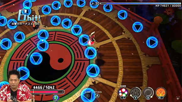 放送では霊夢を操作して、出現する多彩な敵に夢想封印などをお見舞いしつつ、ダッシュを上手く駆使して立ち回っています。今回の先行プレイのボスとなる華扇とのバトルも必見!