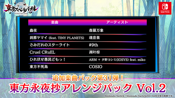 Nintendo Switch™ダウンロード専用ソフト「東方スペルバブル」の追加ダウンロードコンテンツ「東方永夜抄アレンジパック Vol.2」を9月14日(木)より配信開始いたしました!
