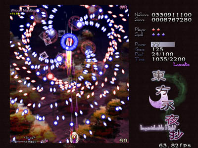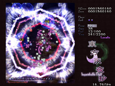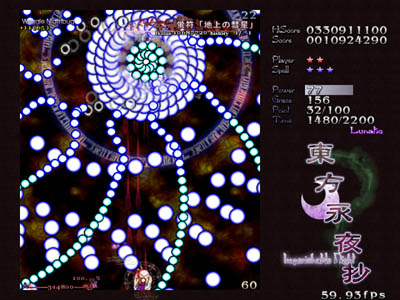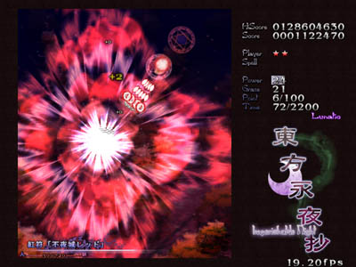 東方永夜抄 ~ Imperishable Night. ゲーム 幻想郷から満月が失われた。空に浮かんでいたのは誰が造ったか判らない偽物の満月。 これは月の魔力を拝借している妖怪にとって、ゆゆしき問題であった。 妖怪と人間は、時間を遅らせて朝までに犯人を見つけ、真の満月を取り戻そうとする。 東方Project第8弾。 とてつもない脅威を相手に、妖怪と人間が協力して戦う作品です。 この作品から、現在の東方Projectに見られるように、人間対妖怪の構図が複雑になっていきます。