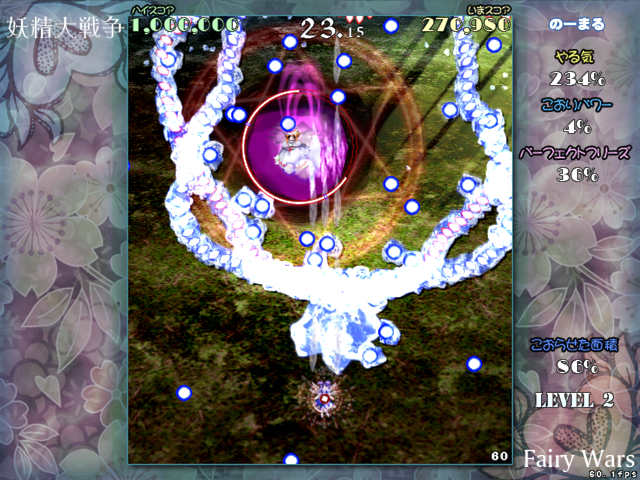妖精大戦争 ~ 東方三月精 ゲーム チルノが主人公で、サニー、ルナ、スターの三妖精達と戦う外伝的な作品です。 チルノは弾幕を凍らせて、とても避けられなさそうな弾幕を破壊して行きます。 本編ではザコとして大量に登場する妖精達ですが、実はこんな熾烈な戦いを行っているのかも知れませんね。 東方Project第12.8弾。 漫画、東方三月精のスピンオフ作品です。 イラストは漫画の作画担当の比良坂真琴さんが担当しています。 3面+1面の短めのゲームと見えて、ルート選択があるという割と贅沢なゲームです。